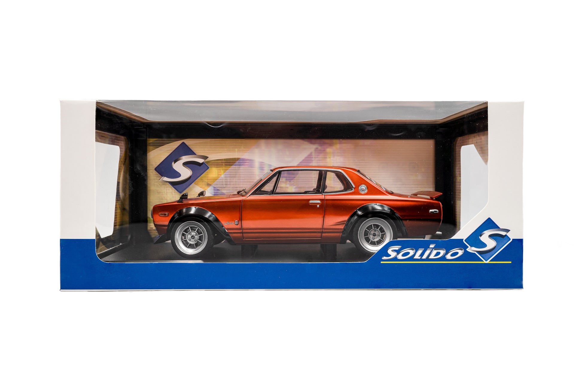 Solido 1/18 diecast 1970 Nissan Skyline GT R (C10) Hakosuka Custom in Orange Metallic